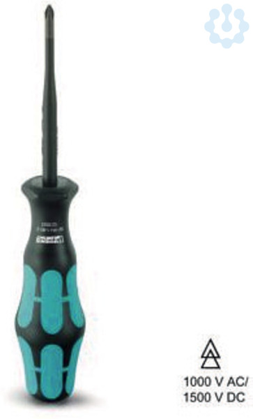 Schraubendreher, Kreuz PH (gelasert), isoliert, Größe: PH 1 x 80, Zwei-Komponentengriff, mit Abrollschutz