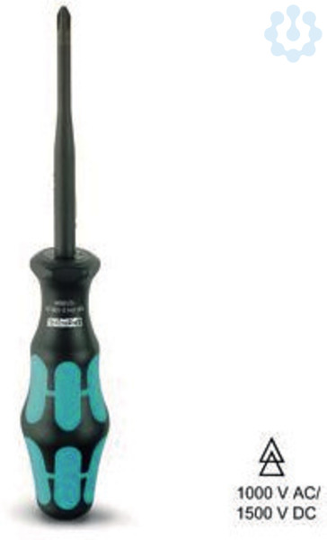 Schraubendreher, Kreuz PH (gelasert), isoliert, Größe: PH 2 x 100, Zwei-Komponentengriff, mit Abrollschutz