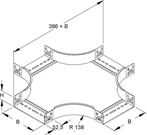 Kreuzung, mit ungelochten Seitenholmen, mit Verbinderlochung für den Anschluss, für Kabelrinnen, zur Herstellung von horizontalen 90° Kreuzungen, mit integrierten Stoßstellenverbindern, einschließlich feuerverzinkten anteilmäßigem Befestigungszubehör. VDE zertifiziert! Zur Verwendung im Funktionserhalt bitte Zusatzvorschriften beachten!