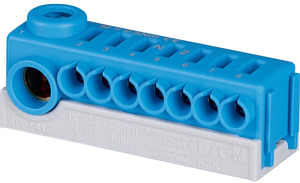 Bestückte Kombi-Steckklemme KSK für den Mauerkasten. 1x N-Potenzial, 1x 2,5-25 mm2 und 7x 0,5-4 mm2