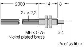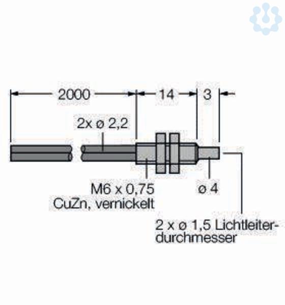 Kunststoff-Lichtleiter, Gabelleiter, Gesamtlänge des Lichtleiters: ± 1829 mm, Betriebsart: Reflexionslichttaster / -schranke, Polyethylen-Ummantelung, flexibel, Betriebstemperatur: -30...+70 °C, Gerades, konfektionierbares Kabel, Lichtleiter-Kerndurchmesser: 1.5 mm, Fühler-Endhülse: Gewinde M6 x 0,75
