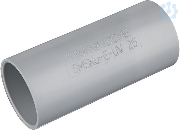 SMSKu-E-UV ist eine Kunststoff-Steckmuffe aus modifiziertem PVC, in Farbe grau (RAL 7035), nicht flammenausbreitend, UV-stabilisiert. Verwendet wird diese Steckmuffe zur Verbindung des Kunststoff-Stangenrohres FPKu-ES-F-UV grau und bei Aufputzinstallationen im Freien. Der Vorteil liegt in der UV-Stabilität. Bis 10 Jahre UV-stabil. VDE 0605 DIN EN 61386-21