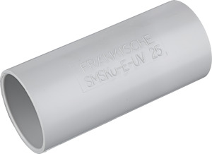 SMSKu-E-UV ist eine Kunststoff-Steckmuffe aus modifiziertem PVC, in Farbe grau (RAL 7035), nicht flammenausbreitend, UV-stabilisiert. Verwendet wird diese Steckmuffe zur Verbindung des Kunststoff-Stangenrohres FPKu-ES-F-UV grau und bei Aufputzinstallationen im Freien. Der Vorteil liegt in der UV-Stabilität. Bis 10 Jahre UV-stabil. VDE 0605 DIN EN 61386-21