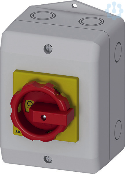 SENTRON, Lasttrennschalter 3LD, Not-Aus-Schalter, 3- polig, Iu: 25 A, Betriebsleistung / bei AC-23 A bei 400V: 9,5 kW, Isolierstoff- Kapselung für metrische Verschraubung, 1Ã-, 1S, Drehantrieb, rot/gelb Der Haupt- und Not-AUS-Schalter 3LD als Reparaturschalter für eine sichere Abschaltung von Lasten in unterschiedlichsten Umgebungen. Die Einsatzmöglichkeiten der Netztrenneinrichtungen 3LD sind vielfältig. Nach Netztrennungen sorgen sie für die sichere Freischaltung der gesamten elektrischen Ausrüstung, schalten so zum Beispiel Drehstrommotoren, aber auch Klima- und Lüftungsanlagen. 3LD haben sich in vielen Bereichen bewährt, insbesondere in Be- und Verarbeitungsmaschinen des Maschinen- und Förderanlagenbaus, in der chemischen oder in der Nahrungsmittel- und Getränkeindustrie. Die Siemens Haupt- und Not-AUS-Schalter 3LD zeichnen sich vor allem aus durch: 1. Modularer Aufbau, schnelle einfache Montage von Hilfsschaltern, N- PE-Klemme oder 4. Pol. 2. Vielseitig und weltweit einsetzbar dank internationaler IEC-,