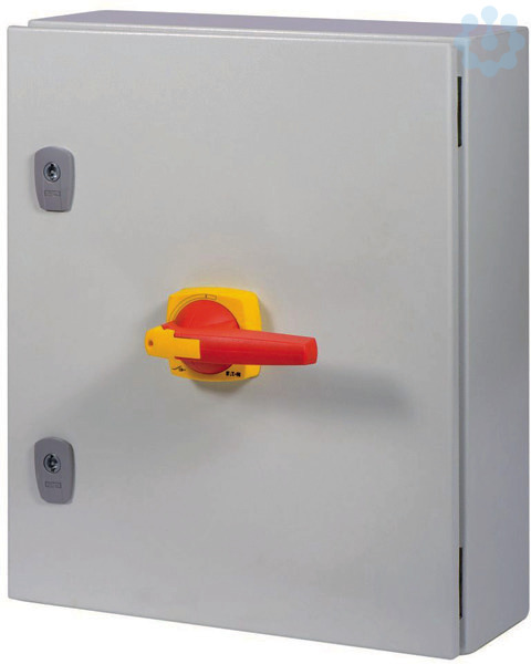 Lasttrennschalter, DMV, 160 A, 4-polig, NOT-AUS-Funktion, mit rotem Drehgriff und gelbem Sperrkranz, im Stahlgehäuse, Anschlussbohrung 9 mm
