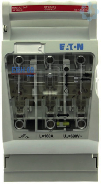 Sicherungszubehör, Lasttrennschalter, Niederspannung, 160 A, AC 690 V, NH00, AC23B, 3P, IEC, horizontal, 60 mm Sammelschienenmontage, Kabelklemme, unten, Kabelschuhklemmen, Schrauben M8, Sicherungseinsätze NH00, IEC 60947-1, IEC 60947-3, IP20