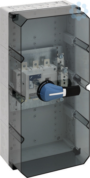 Lasttrennschaltergehäuse, Industrie Qualität mit externer Betätigung, abschließbar, 1 x Lasttrennschalter 250A, 3-polig schaltend, Schraubanschluss M10, PE/N-Klemme M10, mit Isolierstopfen, mit transparentem Deckel