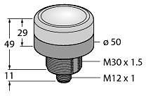 LED-Anzeige, Kennleuchte, Rundum LED-Anzeige, Seitenansicht, einzeln ansteuerbar, Mechanisches Einschraubgewinde M30x1.5, Schutzart IP67, Stecker M12X1, Betriebsspannung 12?30 VDC, Einfarbig: Gelb (COL 2), Beleuchtungsstärke: 425 Lx bei 4? Abstand