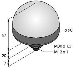LED-Anzeige, Kennleuchte, Rundum-LED-Anzeige, Schutzart IP67, Mechanisches Einschraubgewinde M30 x 1,5, Stecker, M12 x 1, 5-polig, Betriebsspannung: 12...30 VDC, Einzeln ansteuerbar, Eingänge: PNP, Farben: Grün (COL1), Blinkfunktion (1,6 Hz) über Funktionseingang wählbar