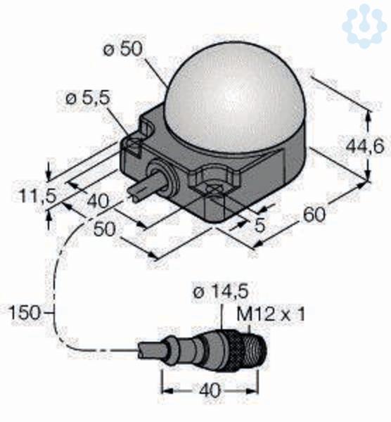 LED-Anzeige, Kennleuchte, Rundum LED-Anzeige, Flache Montage, einzeln ansteuerbar, Schutzart IP67/IP69K, Kabel mit Steckverbinder M12X1, 5-polig, Betriebsspannung 18?30 VDC, Farben: Grün (COL 1) / Rot (COL 2) / Gelb (COL 3)