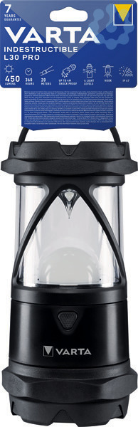 Extrem robuste (4m Falltest) Campinglaterne mit einer COB LED und 4 Leuchtlevel (High, Med, Low, Nachtlicht-Modus). Inklusive Nachtlicht-Modus. Abnehmbarer Kopf und im Boden integrierter Haken zum Aufhängen. Stoßabsorbierender Leuchtenkopf und -fuß. Verfügt über eine bruchfeste Linse und Reflektor und eine 360 Grad Ausleuchtung. Wird mit 6AA Batterien (nicht inkl.) betrieben.