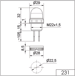 LED-Dauerleuchte mit M 22 Gewinde für das Befehls- und Meldegeräteprogramm, hervorragende Sichtbarkeit von der Seite