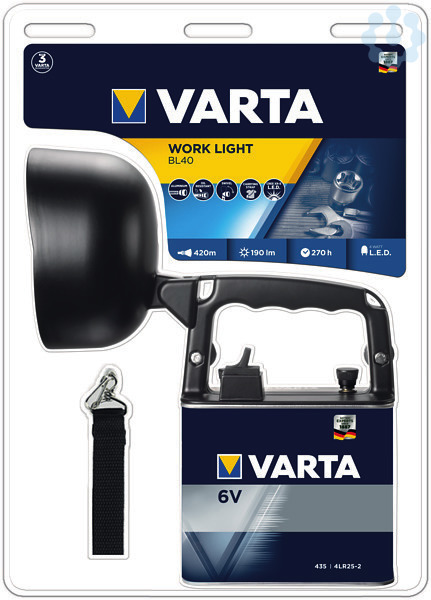 Hochleistungs-LED CREE XRE, zwei Leuchtstärken: 100 Prozent Lichtleistung und 50 Prozent Energiesparmodus, 145 Grad höhenverstellbarer Leuchtenkopf, säureresistent und ölabweisend, Tragegurt für optimalen Bedienkomfort, mit VARTA Longlife POWER Alkali Batterie für bis zu 250 Stunden Batterielaufzeit, Ersatzteile: Batterie Blister, Bestell-Nr. 00435 101 111, Leuchtweite: 430m (bei 0,25lux), Leuchtdauer: bis zu 250 Std., Lumen: bis zu 190, Technologie: 4 Watt LED