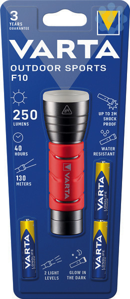 Innovative Eigenschaften, frisches Design und auffallende Farben machen die Outdoor Sports Taschenlampen, bei jeder Outdoor-Aktivität, zum idealen Begleiter. Super helle kaltweiße Cree LED mit 2 Leuchtmodi: High und low. Eloxiertes Aluminiumgehäuse (Typ II), Komfortabler Gummigriff und Photolumineszierender Ring am Leuchtkopf (nachleuchtender Gummiring. Bis zu 2m falltesterprobt und IPX4 spritzwassergeschützt und Handschlaufe inklusive. Mit 3x Longlife POWER AAA Batterien wird ein Lichtstrom: bis zu 235 Lumen / Leuchtweite: 151 m / Laufzeit: bis zu 35 Stunden.