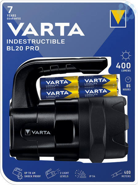Extrem robuster (4m Falltest), heller Handscheinwerfer mit Hochleistungs-LED und zwei Leuchtlevel (High und Low). Stoßabsorbierender Leuchtenkopf und Gummielemente. Verfügt über eine bruchfeste Linse und Reflektor und über helle Hochleistungs-LED. Außerdem ist sie spritzwasser- und staubgeschützt (IP54). Wird mit 6AA Batterien (inkl.) betrieben.