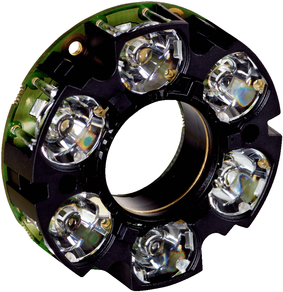 Beleuchtungen, LED, Beschreibung: Integrierbare Beleuchtung, Beleuchtungsfarbe Rot, Narrow, verwendbar für S-Mount und kompakte C-Mount Objektive mit Brennweiten von 25 mm und 35 mm