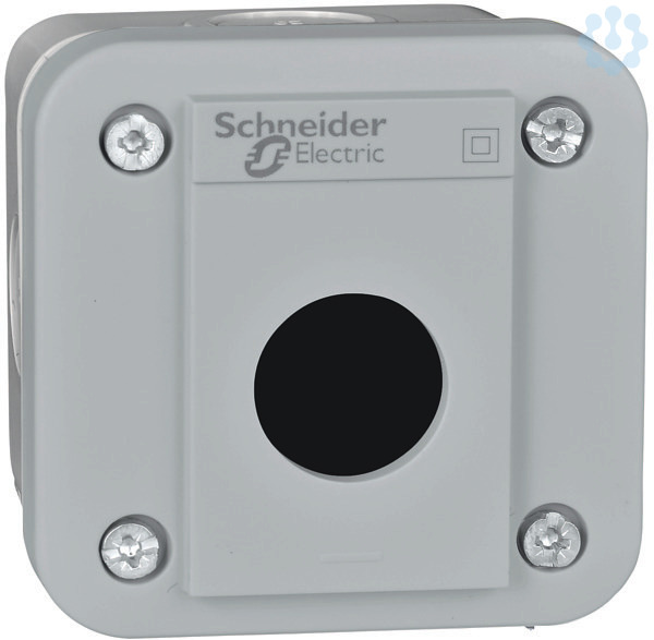 Leeres Steuergehäuse mit hellgrauem Unterteil und Abdeckung. Es ist Teil der Baureihe Harmony XB7 mit einem Durchmesser von 22 mm in Monoblockausführung aus Kunststoff, Drucktaster und Leuchtmelder.
