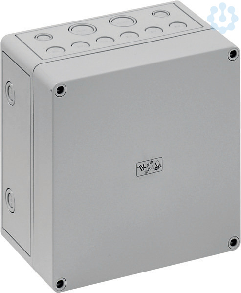 Leergehäuse - Industrie Qualität, Kasten und Deckel: glasfaserverstärktes Polycarbonat, lichtgrau ähnlich RAL 7035, Schutzart IP66, Schlagfestigkeit IK08, Schutzklasse II, Bemessungsisolationsspannung Ui 690VAC/DC, Ui=1000VDC, Halogenfrei, 182 x 180 x 111, mit metrischen Vorprägungen