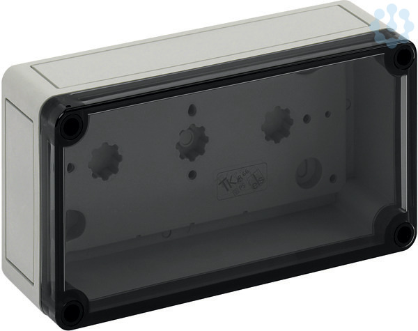 Leergehäuse IP 66 Polystyrol, Kasten Polystyrol grau ähnlich RAL 7035, Deckel Polycarbonat transparent, ohne Vorprägungen