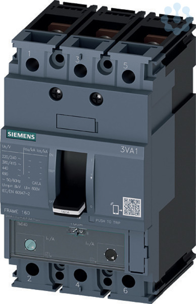 Leistungsschalter 3VA1 IEC Frame 160 Schaltvermögenklasse H Icu=70kA @ 415V 3-polig, Anlagenschutz TM240, ATAM, In=100A Überlastschutz Ir=70A...100A Kurzschlussschutz Ii=5...10 x In Schraubenflachanschluss Kompaktleistungsschalter 3VA1 für Starterschutz. Die Kompaktleistungsschalter 3VA von Siemens als wichtiger Bestandteil der SENTRON Schutzkomponenten für industrielle Anwendungen sowie für Anwendungen im Infrastrukturbereich bieten effektiven Anlagen -, Starter- und Motorschutz durch sicheres Abschalten im Überlast- und Kurzschlussfall. Die Kompaktleistungsschalter 3VA setzen dabei Maßstäbe in Flexibilität und modularer Zubehörvielfalt. Einheitliches Zubehör für mehrere Baugrößen über alle Baureihen des Kompaktleistungsschalters 3VA1 und 3VA2. Diese Variante des Kompaktleistungsschalters 3VA zeichnet sich vor allem aus durch: 1. Kompakte Bauform. 2. Verfügbar als Variante für Starterschutz zur Absicherung von elektrischen Motoren gegen Kurzschluss. 3. Verfügbar als 3-polige Ausführung. 4. Abhängig von der B