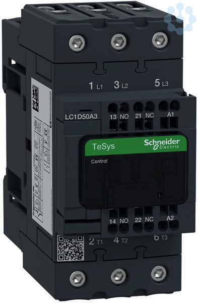 Leistungsschütz TeSys LC1D. 3 polig, 3 Schließer. Zusätzliche Hilfskontakte- 1 Schließer + 1 Öffner, Bemessungsbetriebsleistung bei AC-3, 400 V 22 kW, Bemessungsbetriebsstrom Ie bei AC-3, 400 V 50 A, Spule 230 V AC. Abmessung (BxHxT) 55x122x120 mm, Gewicht 0,855 kg. Kategorie AC-3, AC-4, AC-1. ohne integriertes Beschaltungsmodul. Schnelle und einfache Einrichtung. Sichere und langlebige Stromverbindung mit Everlink und Federklemmen. Geeignet für Sicherheitsanwendungen durch mechanisch gekoppelte Kontakte und Spiegelkontakte. Zertifizierungen nach RINA, CSA, GOST, LROS (Lloyds register of shipping), UL, CCC, BV, GL, DNV. Produktstandards gem.