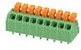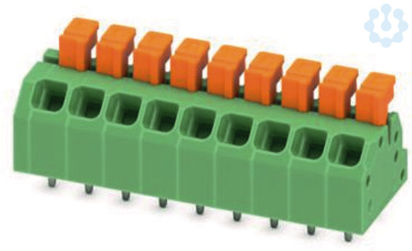Leiterplattenklemme, Nennstrom: 13,5 A, Bemessungsspannung (III/2): 160 V, Nennquerschnitt: 1 mm², Anzahl der Potenziale: 9, Anzahl der Reihen: 1, Polzahl pro Reihe: 9, Artikelfamilie: SPTAF 1/..-LL, Rastermaß: 3,5 mm, Anschlussart: Push-in-Federanschluss, Montage: Wellenlöten, Anschlussrichtung Leiter/Platine: 45 °, Farbe: grün, Pin-Layout: Lineares Doppel-Pinning, Pinlänge [P]: 2,6 mm, Verpackungsart: verpackt im Karton