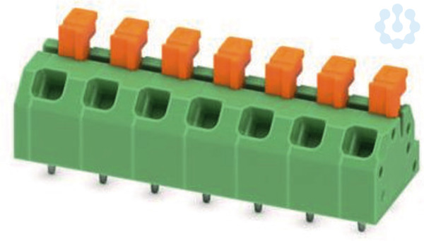 Leiterplattenklemme, Nennstrom: 13,5 A, Bemessungsspannung (III/2): 320 V, Nennquerschnitt: 1 mm², Anzahl der Potenziale: 7, Anzahl der Reihen: 1, Polzahl pro Reihe: 7, Artikelfamilie: SPTAF 1/..-LL, Rastermaß: 5 mm, Anschlussart: Push-in-Federanschluss, Montage: Wellenlöten, Anschlussrichtung Leiter/Platine: 45 °, Farbe: grün, Pin-Layout: Lineares Doppel-Pinning, Pinlänge [P]: 2,6 mm, Verpackungsart: verpackt im Karton
