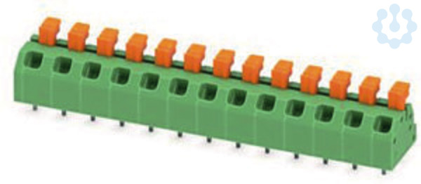 Leiterplattenklemme, Nennstrom: 13,5 A, Bemessungsspannung (III/2): 320 V, Nennquerschnitt: 1 mm², Anzahl der Potenziale: 13, Anzahl der Reihen: 1, Polzahl pro Reihe: 13, Artikelfamilie: SPTAF 1/..-LL, Rastermaß: 5 mm, Anschlussart: Push-in-Federanschluss, Montage: Wellenlöten, Anschlussrichtung Leiter/Platine: 45 °, Farbe: grün, Pin-Layout: Lineares Doppel-Pinning, Pinlänge [P]: 2,6 mm, Verpackungsart: verpackt im Karton