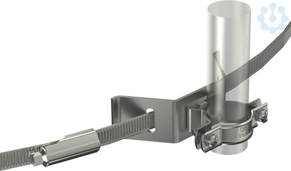 Leitungshalter für isCon-Leitung zur Rohrmontage inklusive 2 m Spannband. Mit Federscheiben zur Schraubensicherung gegen Selbstlockern.