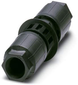 Leitungsverbinder-Wanddurchführung beidseitig mit QPD-Mutter, schwarz, 4+PE-polig, 1,0 mm² ... 2,5 mm² / 690 V / 20 A, für Kabeldurchmesser 6 mm ... 11 mm.