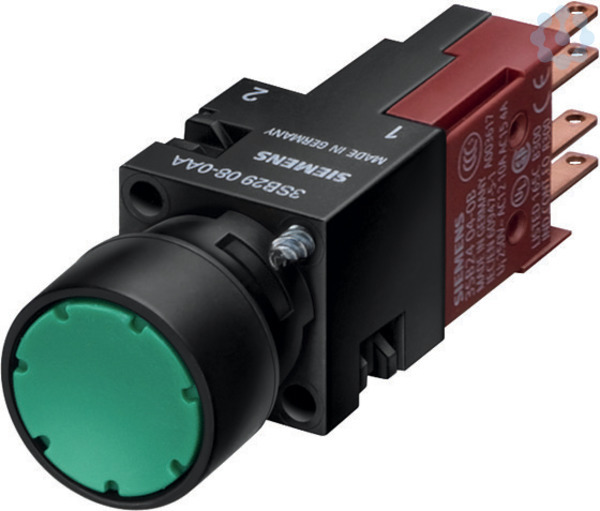 Leuchtdrucktaster, 16 mm, rund, Kunststoff, grün, Druckknopf, flach, 1S, Lampenfassung W2 x 4,6 d, mit Glühlampe 24 V Leuchtdrucktaster SIRIUS 3SB2 zur Schaltung und Steuerung elektrischer Verbraucher.Die Drucktaster und Leuchtmelder 3SB2 sind modular aufgebaut, praxisbewährt und industrietauglich. Durch ihre kleine Bauform sind sie besonders für kleine Bedienflächen geeignet. Sie sind höchst funktionell, extrem robust und erfüllen die Normen IEC/EN 60947-5-1 und 60947-5-5. Sie können ohne Spezialwerkzeug und in hoher Packungsdichte verbaut werden.Lieferbare Ausführungen: mehrere Farben, beleuchtet/unbeleuchtet, mit/ohne Beschriftung, verrastende/tastende Betätigung, sowie verschiedene Druckknopfhöhen.Hinweis: Komplettgerät, Lieferung inklusive Halter und Schaltelement(en).3SB2 - Platzsparend, praxisbewährt und industrietauglich!