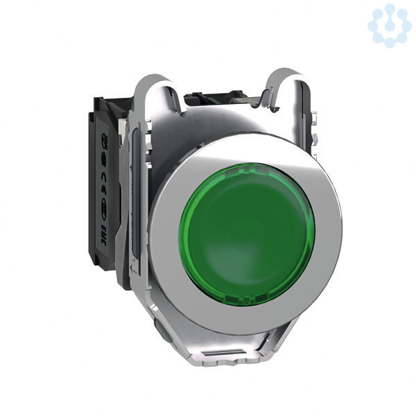 Leuchtdrucktaster Harmony XB4F. mit einfacher Linse, 1Schließer+1Öffner. 10000000 Zyklen. Abmessung (BxHxT)- 36,6x47x55 mm, Montagedurchmesser 30,5 mm. Mit hoher Vibrationsfestigkeut und chemischer Beständigkeit, Umgebungstemperatur -40 bis +70 Grad C. Chrom-beschichtes Metall, geschützte LED. Bis IP69K. Zertifizierungen- UL gelistet, CSA. Produktstandards- CSA C22.2 No 14, EN/IEC 60947-5-1, EN/IEC 60947-5-4, UL 508, EN/IEC 60947-1, JIS C 4520.