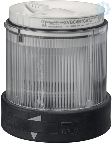 Leuchtelement mit Dauerlicht. Grundfarbe Farblos, Spannung 24 V AC/DC, Verwendung XVB. Modular, für Signalsäulen, LED integriert (auch mit LED 120 und 230 V AC lieferbar). Schutzart IP 65. DM 70 mm. konstant beleuchtete Einheit mit Lichtdiffusor.
