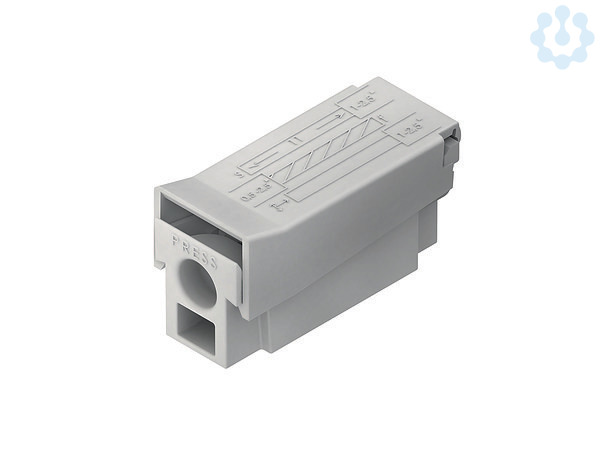 Schraubenlose Leuchten-Anschlussklemme, 1/2-polig, vollisoliert, halogenfrei. Abmessungen (ca. Maße) H x B x T : 13 x 10 x 24 mm Klemmbereich leuchtenseitig