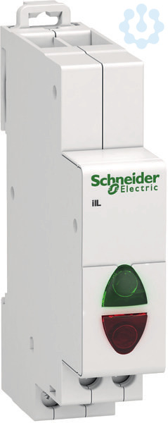 Doppel-Leuchtmelder Acti 9 iIL. LED, grün/rot, Betriebsspannung (Ue) 12-48V AC / 12-48V DC. Leuchtet auf, wenn Spannung anliegt. Der iIL Doppel-Leuchtmelder erfüllt folgende Normen- IEC/EN 60947-5-1.