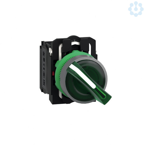 Leuchtwahlschalter aus Kunststoff als Komplettgerät und 22mm Einbaumaß, Baureihe Harmony XB5. Farbe des Leuchtwahlschalters ist grün und der Betätiger hat 2 Stellungen mit 1 Öffner und 1 Schließer. Für 24V AC/DC. Die Farbe des Außenrings ist grau. Die modularen Harmony Baureihen mit 22mm Einbaumaß kombinieren einfache Installation, Effizienz, modernes Design, Flexibilität mit höchster Robustheit. IP-Schutzklassen bis IP69K und Umgebungstemperaturen von -40°C bis +70°C. Produktstandards gem. EN/IEC 60947-5-1, EN/IEC 60947-5-4, CSA C22.2 No 14, UL 508, EN/IEC 60947-1, JIS C 4520. Zertifizierungen nach DNV, GL, UL gelistet, RINA, BV, CSA, LROS (Lloyds register of shipping). Produktstandards gem. EN/IEC 60947-5-1, EN/IEC 60947-5-4, CSA C22.2 No 14, UL 508, EN/IEC 60947-1, JIS C 4520.