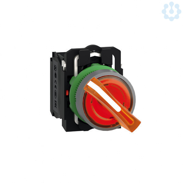 Leuchtwahlschalter aus Kunststoff als Komplettgerät und 22mm Einbaumaß, Baureihe Harmony XB5. Farbe des Leuchtwahlschalters ist orange und der Betätiger hat 2 Stellungen mit 1 Öffner und 1 Schließer. Für 230V AC. Die Farbe des Außenrings ist grau. Die modularen Harmony Baureihen mit 22mm Einbaumaß kombinieren einfache Installation, Effizienz, modernes Design, Flexibilität mit höchster Robustheit. IP-Schutzklassen bis IP69K und Umgebungstemperaturen von -40°C bis +70°C. Produktstandards gem. EN/IEC 60947-5-1, EN/IEC 60947-5-4, CSA C22.2 No 14, UL 508, EN/IEC 60947-1, JIS C 4520. Zertifizierungen nach DNV, GL, UL gelistet, RINA, BV, CSA, LROS (Lloyds register of shipping). Produktstandards gem. EN/IEC 60947-5-1, EN/IEC 60947-5-4, CSA C22.2 No 14, UL 508, EN/IEC 60947-1, JIS C 4520.