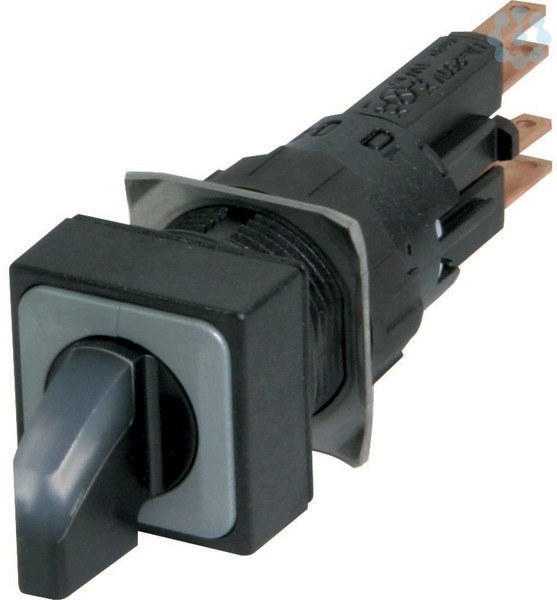 Leuchtwahltaste, Sortiment: RMQ16, Einzelgerät, Bauform: mit Knebelgriff, tastend, inkl. Verdrehschutz VS, ohne Leuchtmittel, mit Sockel W2x4,6d. max. 30 V, 1 W, 2 Stellungen, Farbe Knebelgriff: weiß, Schutzart: IP65, Anbindung an SmartWire-DT: nein, Frontabmessung: 18 x 18 mm, Schutzart: IP65