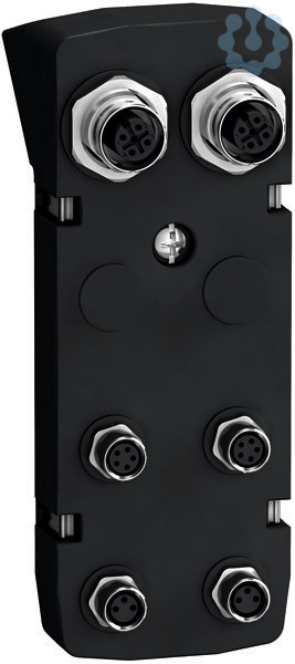 Integrierter Servoantrieb der Reihe Lexium 32i, Anschlussmodul. Dieser integrierte Servoantriebe bietet Ihnen ein modulares Konzept aus Antriebseinheit, Steuereinheit und Anschlussmodulen an, das entsprechend der jeweiligen Anwendungen zusammengesteckt wird. Dieses Anschlussmodul stellt 2 digitale Eingänge und 2 digitale Ausgänge an M8-Steckverbindern zur Verfügung. Die Eingänge sind in positiver Logik (Source) ausgeführt. Dieses Anschlussmodul setzt die Steuereinheit für EtherCat oder Ethernet (PROFINET) an der BMI-Antriebseinheit voraus. Der Busanschluss erfolgt über 2x M12-Steckverbinder.