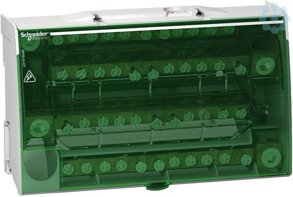 Klemmenblock Acti 9 Lingergy. 4-polig, 4 x 12 Stück Schraubanschlüsse, Bemessungsbetriebsstrom 160A, Bemessungsbetriebsspannung (Ue) 230V AC (L/N) und 440V AC(L/L), Bemessungsisolationsspannung (Ui) 500V AC. Montierbar auf einer standardmäßigen DIN-Schiene oder einer Montageplatte. Vereinfachte Spannungsversorgung für Haupteinspeisungen. Hervorragende Zugänglichkeit. Isolierung zwischen den Phasen. Kompatibel mit Schaltanlagen der Serien Prisma G und P, Pragma, Mini Pragma und Resbo. Der Klemmenblock Lingery erfüllt folgende Normen- IEC/EN 60947-7-1 und IEC/EN 61439-1 & 2.