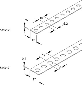 : 17 mm Materialstärke t : 0,8 mm Lochung