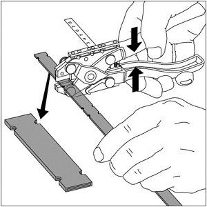 Speziallochzange für Zeichenaufnahmen PTE und PGS mit 6-12 mm Breite, Auch als Messer zum Kürzen von Zeichenaufnahmen zu verwenden, Schneidet und stanzt MINI Standard Zeichenaufnahmen PTE (6 bis 25), Die Zange kann Zeichenaufnahmen 6-25mm,
