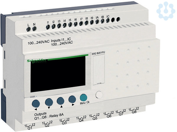Kleinsteuerung in Kompaktausführung. Kleinsteuerung in Kompaktausführung ? mit Display. Modul Kompakt, 20 E/A, 100-240V AC, Uhr. Ausgang_R 8, Ausgang_T 0, Eingang_A 0, Eingang_Bin 12.