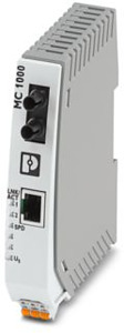 LWL-Konverter mit ST (B-FOC)-LWL-Anschluss (1310 nm), zur Umsetzung von 100Base?TX auf Multimode-Glasfaser. Auto-MDI(X)-Funktion und tragschienenmontierbar.