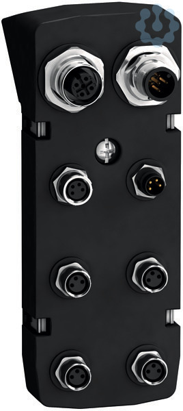 Integrierter Servoantrieb der Reihe Lexium 32i, Anschlussmodul. Dieser integrierte Servoantriebe bietet Ihnen ein modulares Konzept aus Antriebseinheit, Steuereinheit und Anschlussmodulen an, das entsprechend der jeweiligen Anwendungen zusammengesteckt wird. Dieses Anschlussmodul stellt 4 digitale Eingänge an M8-Steckverbindern zur Verfügung. Die Eingänge sind in negativer Logik (Sink) ausgeführt. Anschlüsse für die Sicherheitsfunktion STO sind vorhanden. Dieses Anschlussmodul setzt die Steuereinheit für CANopen/CANmotion an der BMI-Antriebseinheit voraus. Der Busanschluss erfolgt über 2x M12-Steckverbinder.
