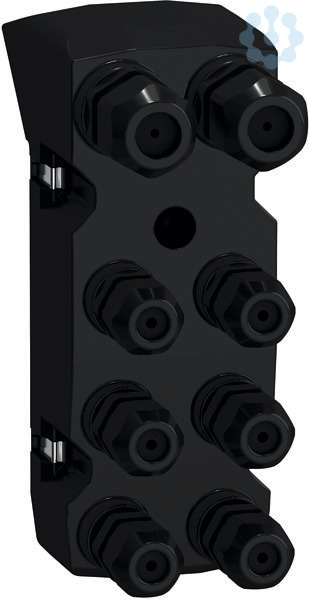 Integrierter Servoantrieb der Reihe Lexium 32i, Anschlussmodul. Dieser integrierte Servoantriebe bietet Ihnen ein modulares Konzept aus Antriebseinheit, Steuereinheit und Anschlussmodulen an, das entsprechend der jeweiligen Anwendungen zusammengesteckt wird. Dieses Anschlussmodul stellt 4 digitale Eingänge und 2 digitale Ausgänge zur Verfügung. Die Eingänge sind in positiver Logik (Source) ausgeführt. Anschlüsse für die Sicherheitsfunktion STO sind vorhanden. Dieses Anschlussmodul setzt die Steuereinheit für CANopen/CANmotion an der BMI-Antriebseinheit voraus. Alle Anschlüsse erfolgen über interne Anschlussklemmen. Dazu sind 8 Aussparungen für Kabeldurchführungen in 6x M12 und 2x M16 auf der Oberseite des Moduls vorhanden.