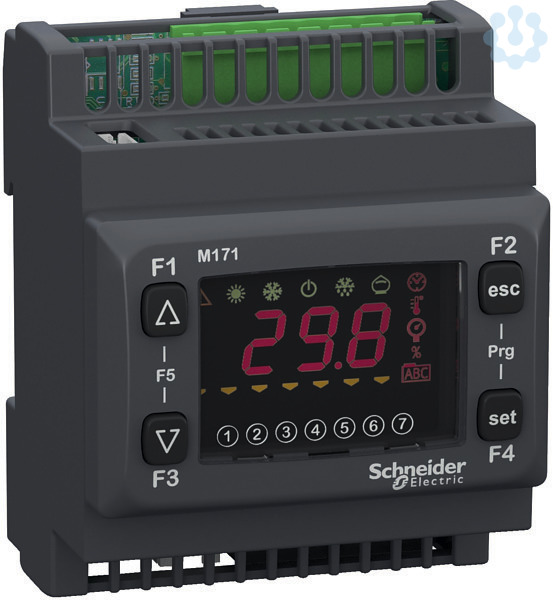 SPS Steuerung Modicon M171 in Optimized Ausführung. Mit integriertem Display und Tasten zum Einstellen von Steuerungsparametern. Insgesamt 22 integrierte E/A, davon 6 digitale und 5 analoge Eingänge, 6 digitale und 5 analoge Ausgänge. Spannungsversorgung: 24 VDC oder 12 bis 24 VAC. Ausführung mit Relaisausgängen und 1 Open Collector Ausgang. Anschlüsse mittels abnehmbaren Schraubklemmleisten (nicht im Lieferumfang enthalten). Montage auf 35 mm Hutschiene.