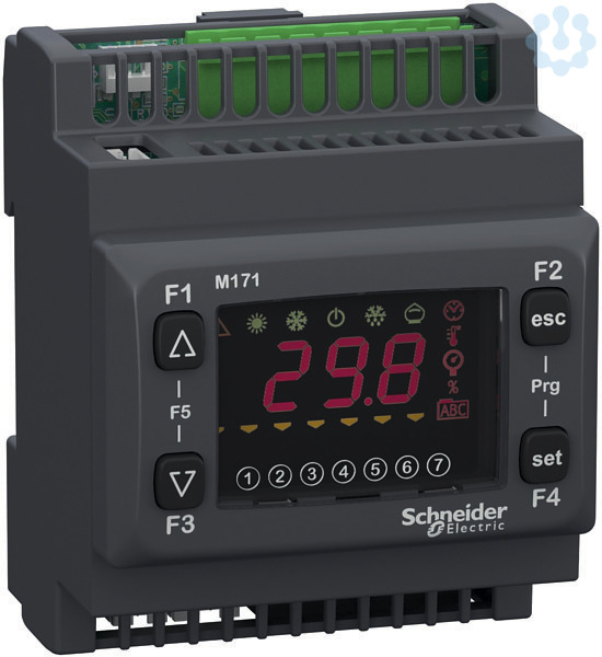 SPS Steuerung Modicon M171 in Optimized Ausführung. Mit integriertem Display und Tasten zum Einstellen von Steuerungsparametern. Insgesamt 22 integrierte E/A, davon 6 digitale und 5 analoge Eingänge, 6 digitale und 5 analoge Ausgänge. Ausgestattet mit RS485 Schnittstelle für Modbus SL. Spannungsversorgung: 24 VDC oder 12 bis 24 VAC. Ausführung mit Relaisausgängen und 1 Open Collector Ausgang. Anschlüsse mittels abnehmbaren Schraubklemmleisten (nicht im Lieferumfang enthalten). Montage auf 35 mm Hutschiene.