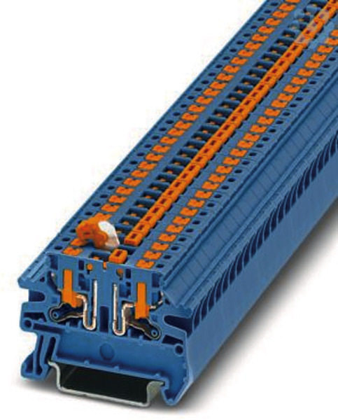 Messertrennklemme, Nennspannung: 800 V, Nennstrom: 24 A, Anschlussart: Push-in-Anschluss, Querschnitt: 0,14 mm² - 4 mm², AWG: 26 - 12, Länge: 50,8 mm, Breite: 5,2 mm, Farbe: blau, Montage: NS 35/7,5, NS 35/15