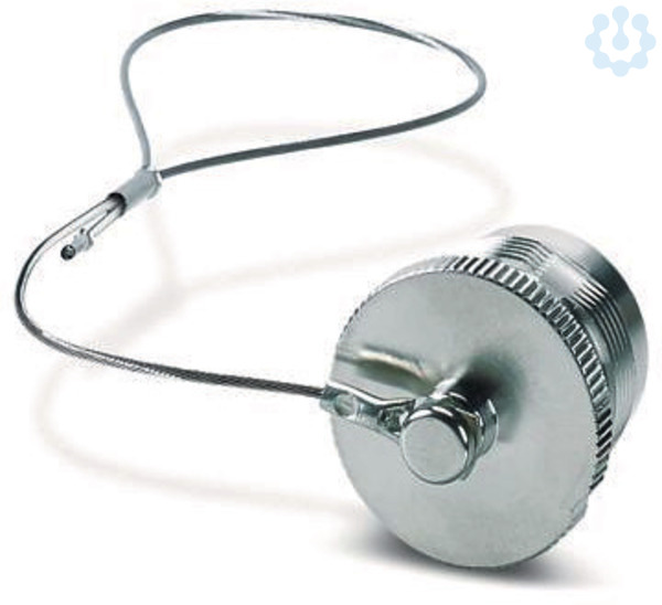 Metallschutzkappe mit Stahlseil und Schlaufe, für M23-Signalsteckverbinder mit Rändelmutter zur Befestigung am Kabel